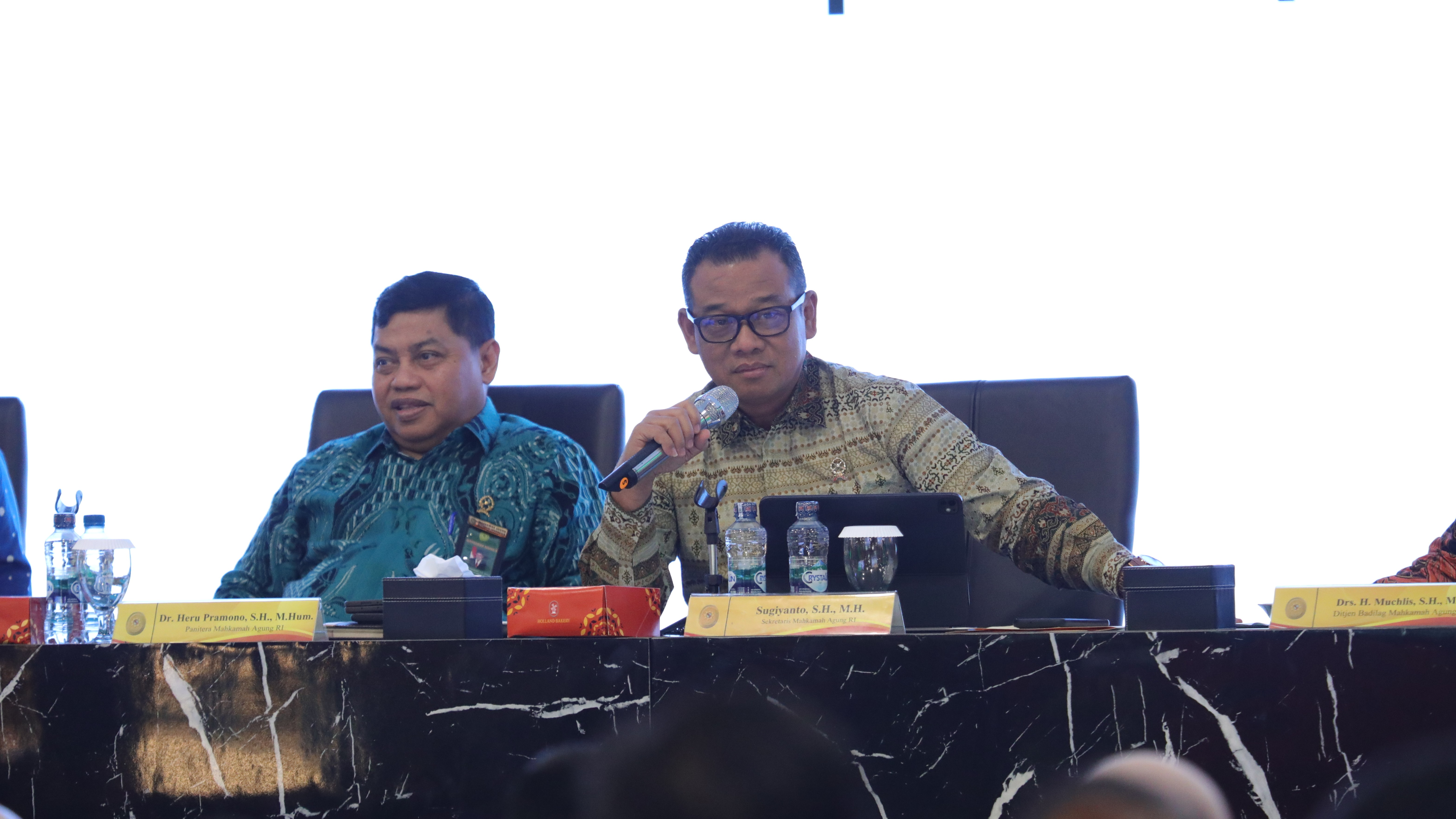 Dalam kegiatan di Balairung Mahkamah Agung, Jakarta Jumat (31/10) itu, Sekretaris MA, Sugiyanto, S.H., M.H. memaparkan berbagai pembaruan kelembagaan, termasuk pedoman pakaian dinas ASN, mutasi pegawai ke satuan kerja pusat, dan pengangkatan jabatan teknis dari ASN nonteknis. Selain itu, Mahkamah Agung juga memperjuangkan peningkatan kesejahteraan Panitera dan Juru Sita melalui usulan perubahan Peraturan Presiden Nomor 24 dan 25 Tahun 2007 kepada Presiden Republik Indonesia dan Kementerian PANRB.