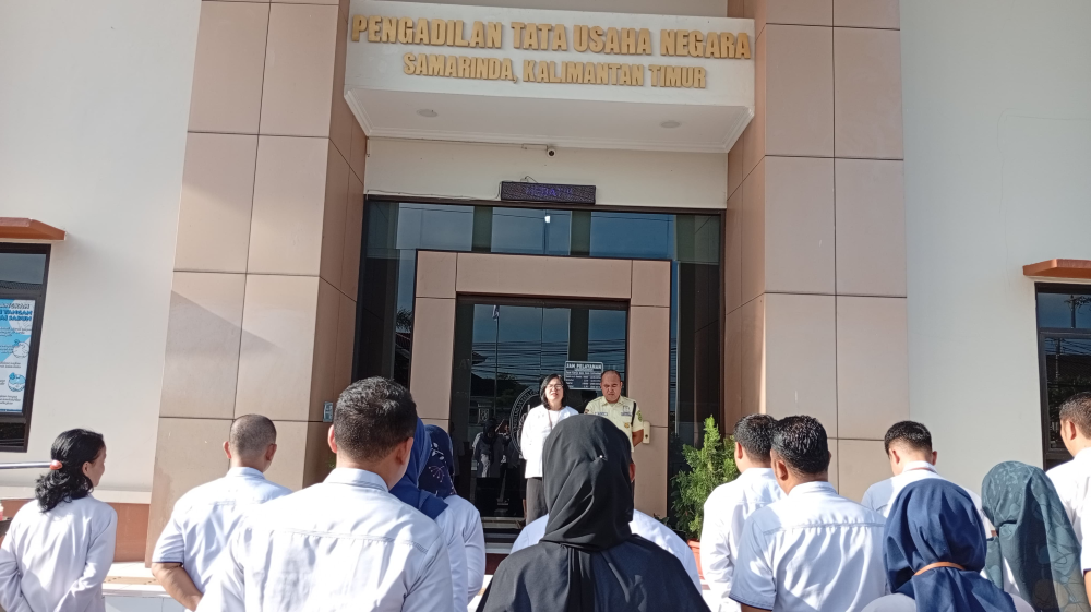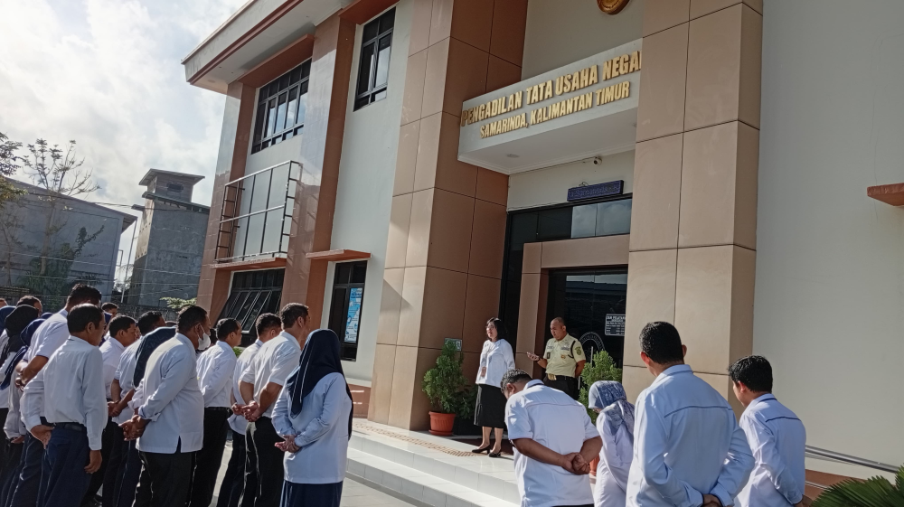 Samarinda, 16 Juni 2025, Wakil Ketua Pengadilan Tata Usaha Negara Samarinda, Rialam Sihite, S.H., M.H. menjadi Pemimpin Apel Pagi. Apel Pagi diikuti oleh Ketua, Para Hakim, Pejabat Struktural, Pejabat Fungsional, Pegawai, dan seluruh PPNPN Pengadilan Tata Usaha Negara Samarinda. Pemimpin apel menyampaikan amanat mengenai Perma No. 7 , 8, 9 Tahun 2016 dan PP Nomor 94 Tahun 2021. Beliau memberi arahan untuk tetap semangat menyelesaikan pekerjaan di pertengahan bulan Juni ini.