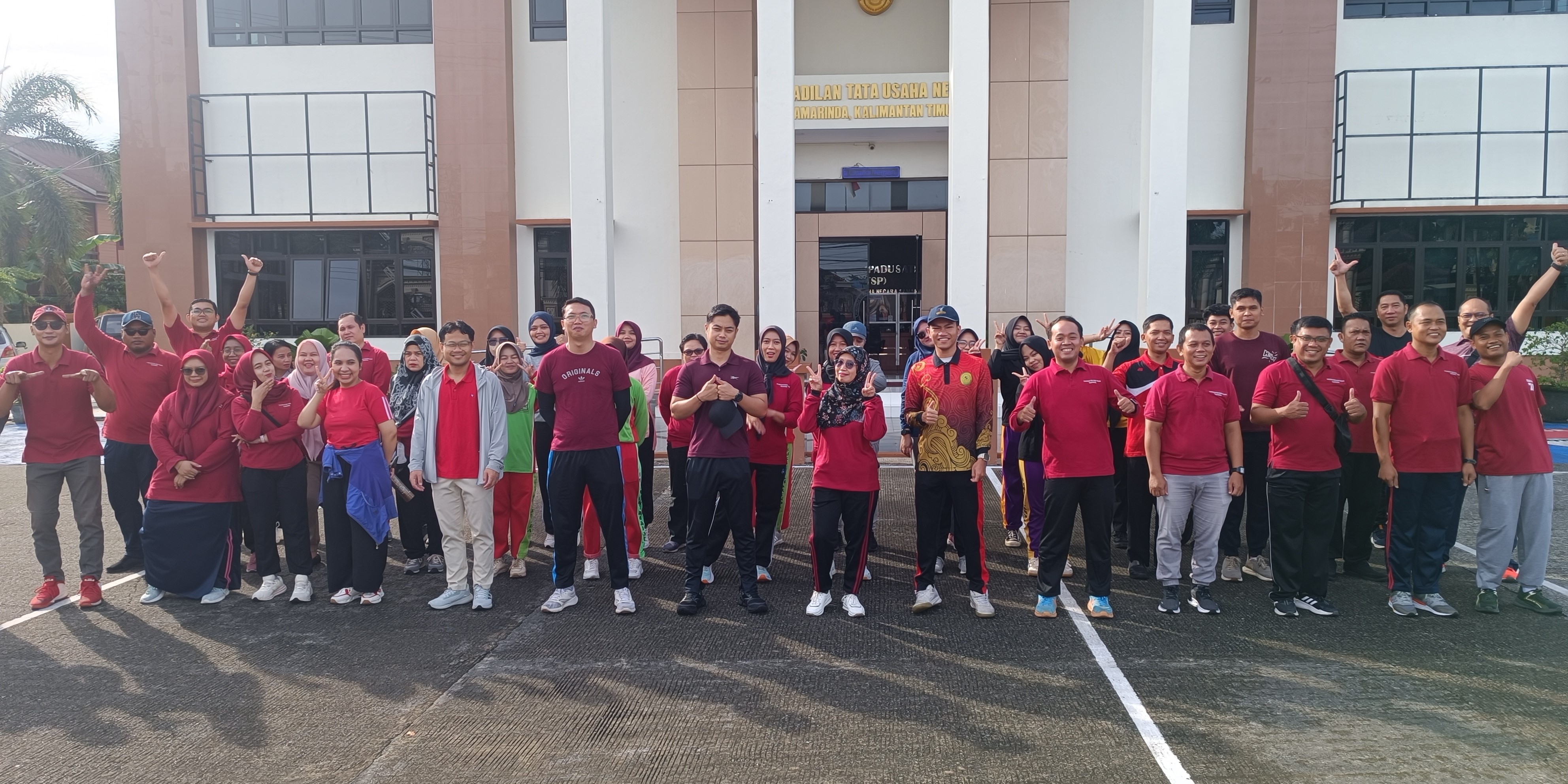 Samarinda, 7 November 2025. Seluruh Aparatur Pengadilan Tata Usaha Negara Samarinda mengikuti kegiatan jalan santai. Kegiatan dilaksanakan pukul 08.00 WITA dan di mulai dari Kantor Pengadilan Tata Usaha Negara Samarinda dan dilanjutkan mengitari lingkungan sekitar Kantor Pengadilan Tata Usaha Negara Samarinda. Selain bertujuan untuk menyehatkan badan kegiatan tersebut juga bertujuan untuk menyegarkan pikiran sehingga siap memberikan kinerja terbaik dalam melaksanakan tugas.