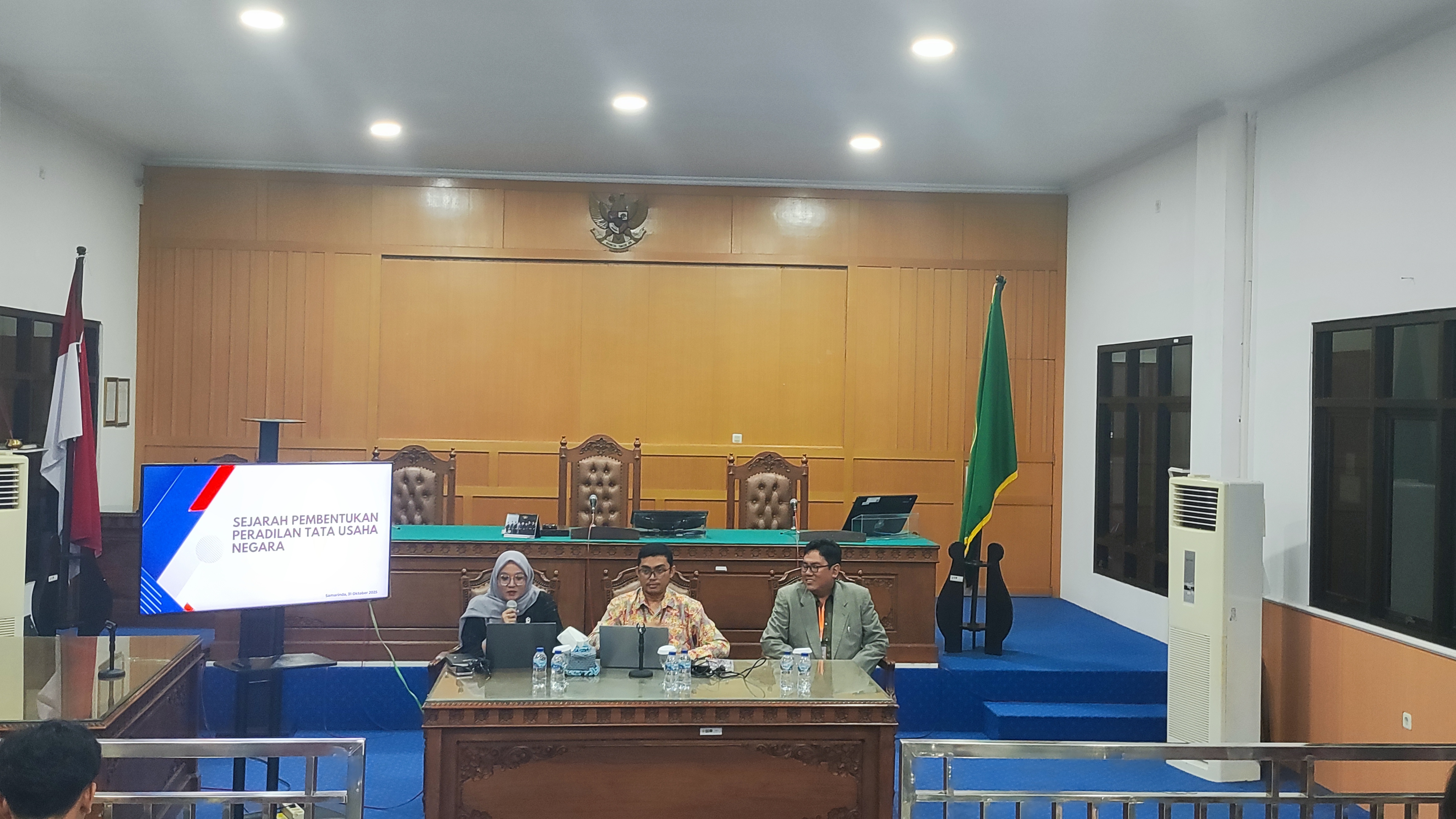 Samarinda, 31 Oktober 2025, Pengadilan Tata Usaha Negara Samarinda menerima Kunjungan Studi dari Mahasiswa Fakultas Ilmu Sosial dan Ilmu Politik Program Studi Administrasi Publik Universitas 17 Agustus 1945 Samarinda sebanyak 35 Orang Mahasiswa/Mahasiswi. Pemateri dalam Kunjungan Pembelajaran tersebut adalah Hakim Pengadilan TUN Samarinda, Bapak Hidayat Pratama Putra , S.H., M.H., dan Ibu Keysha Valendia Ekasati Harahap, S.H.,.