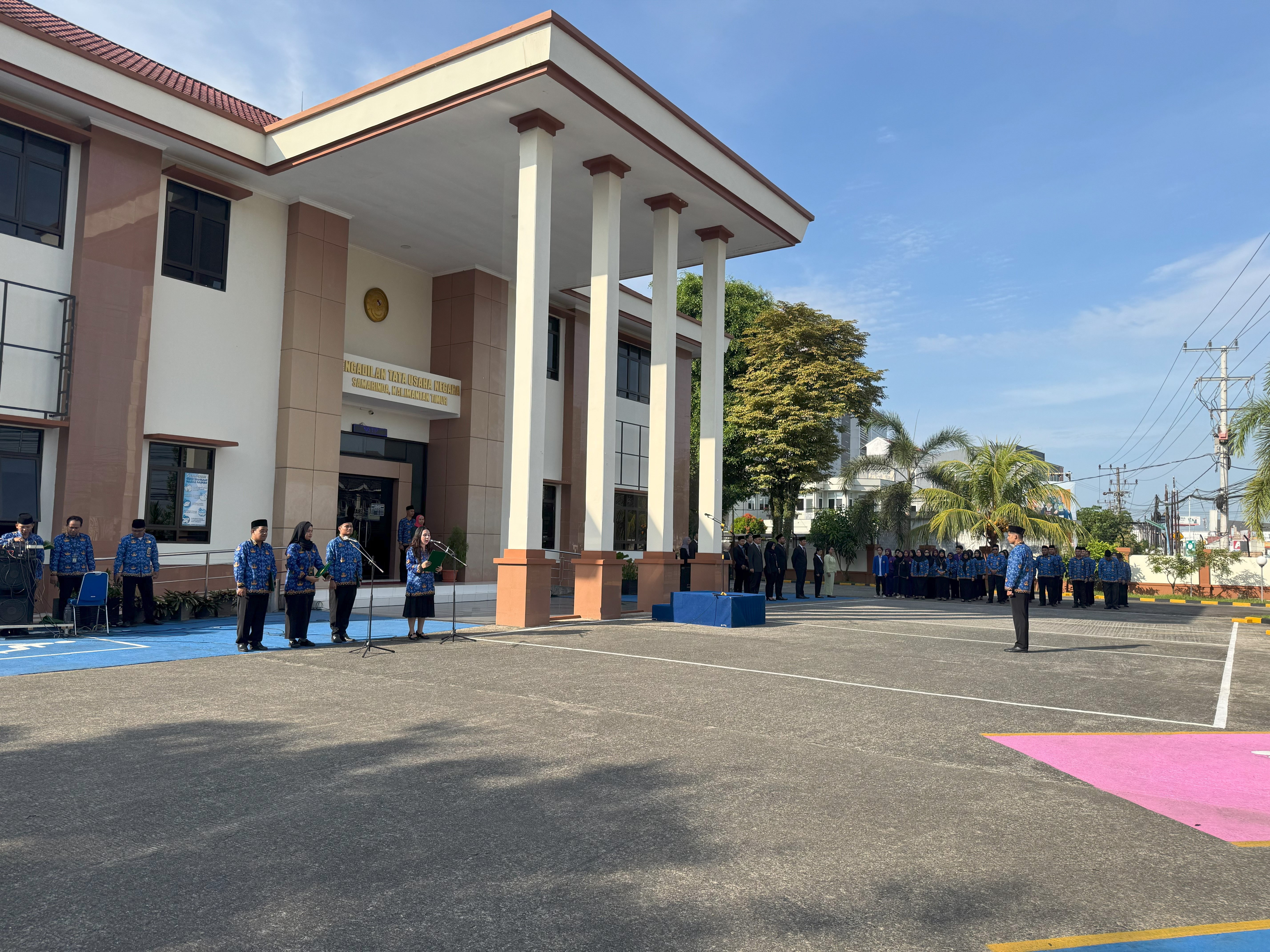 Ketua Pengadilan Tata Usaha Negara Samarinda, Ibu Dyah Widiastuti, S.H., M.H. bertindak selaku Pembina Upacara diikuti oleh Wakil Ketua, Bapak/Ibu Hakim, Panitera, Sekretaris, Pejabat Struktural, Pejabat Fungsional, Pelaksana, PPPK, dan Dharmayukti Karini PTUN Samarinda.