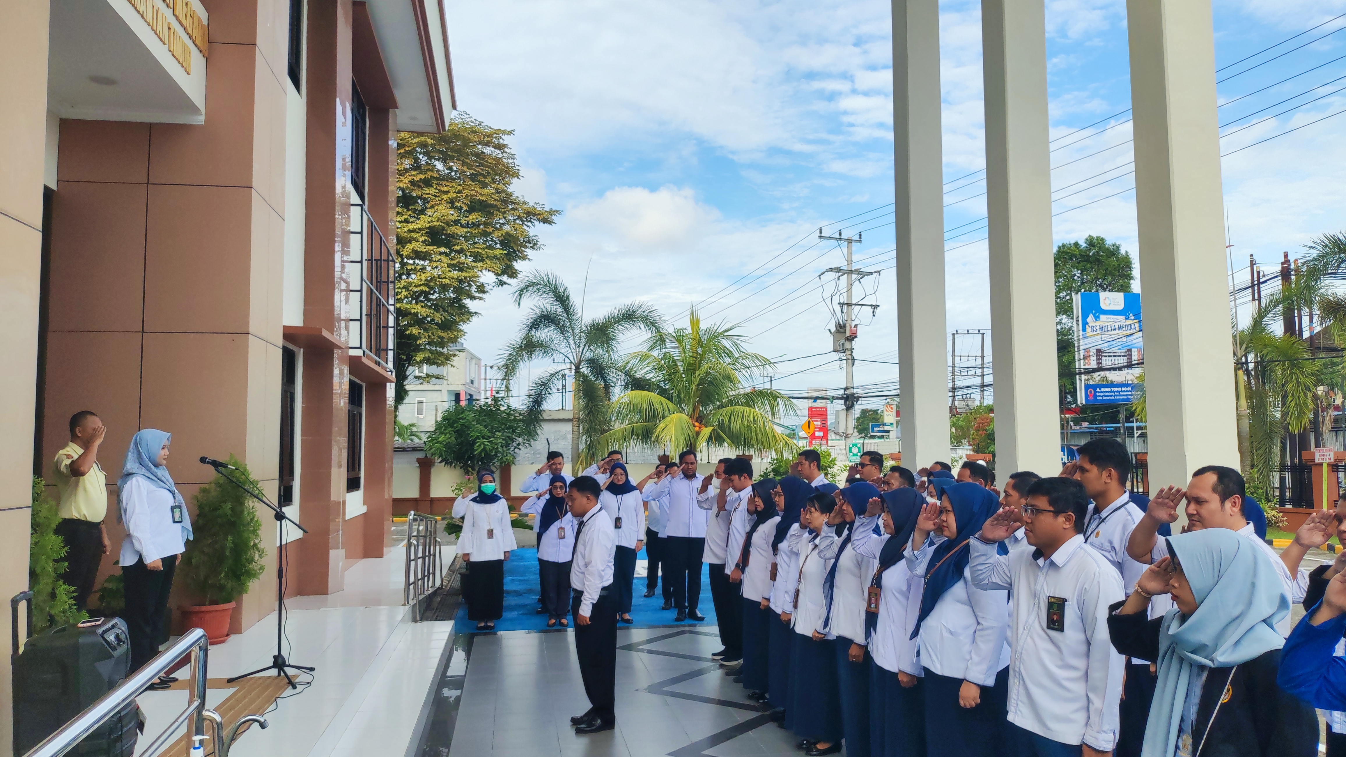 Samarinda, 27 Oktober 2025. Pelaksanaan Apel Pagi dipimpin oleh Hakim PTUN Samarinda, Anissa Yanuartanti, S.H., M.H. dalam amanatnya beliau menyampaikan untuk menentukan target kerja agar terarah dan terukur dalam menjalankan pekerjaan. Beliau juga menyampaikan untuk selalu mentaati Perma 7, 8, 9 Tahun 2016, PP 94 Tahun 2021, Kode Etik Hakim, Panitera, Juru Sita dan Kode Etik ASN.