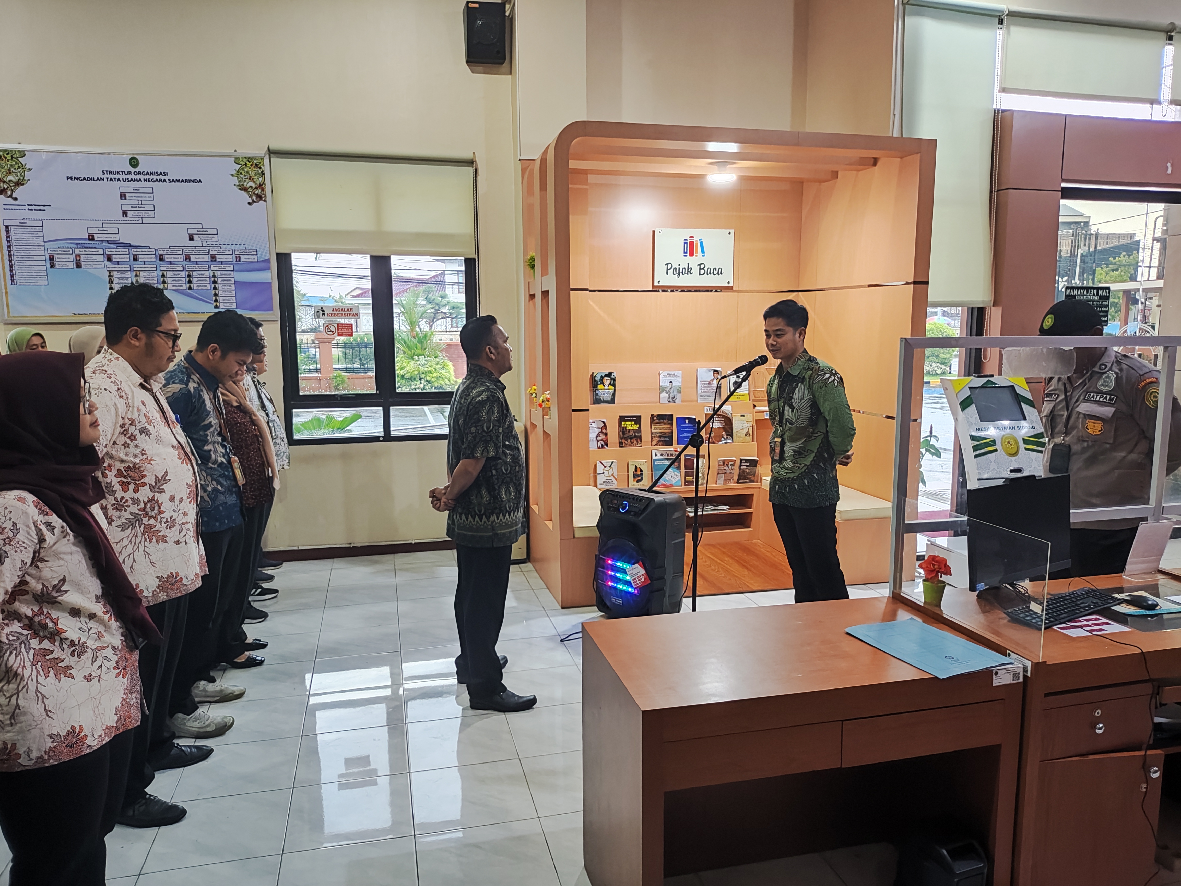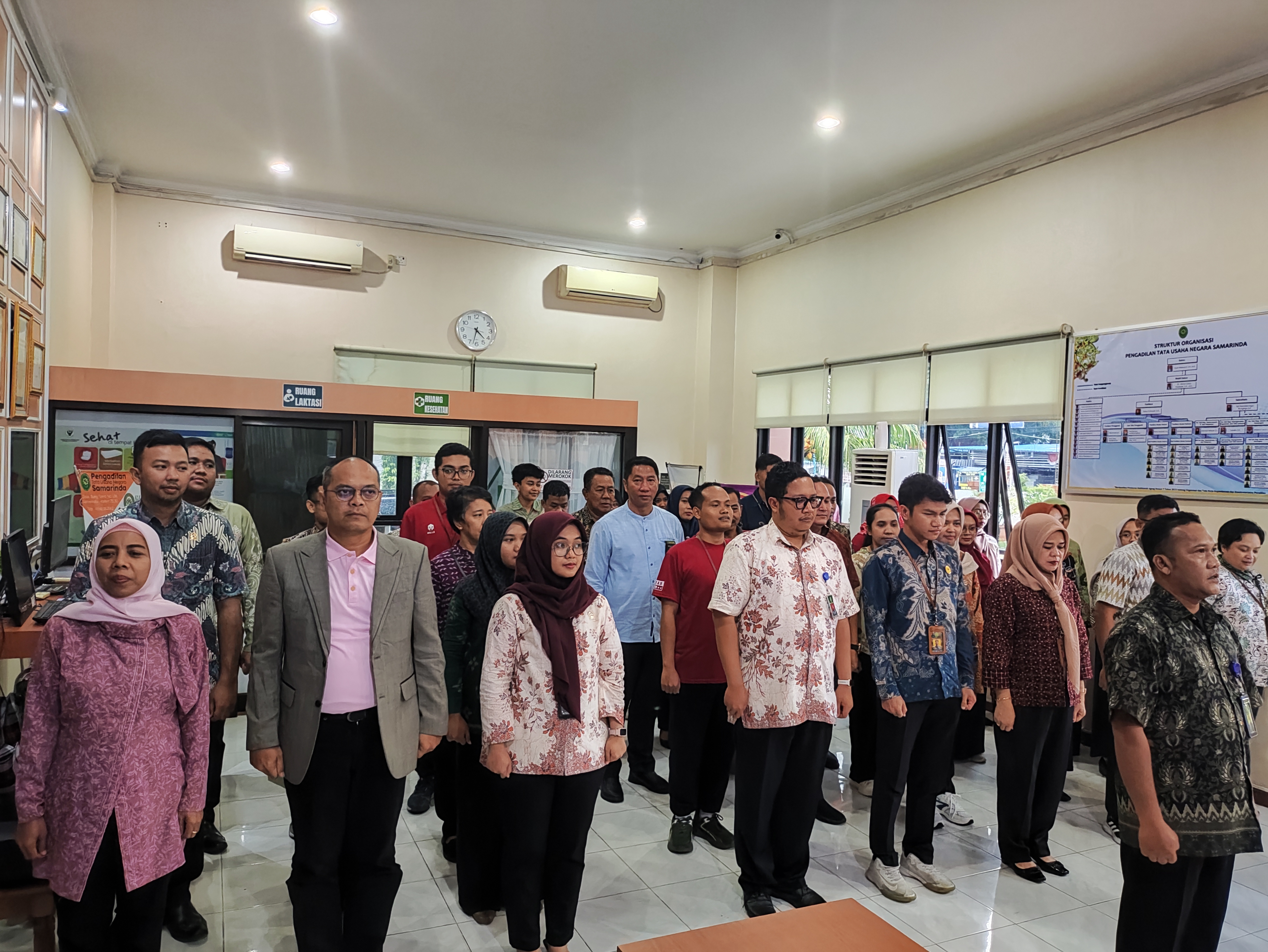 Samarinda, 19 September 2025. Pelaksanaan Apel Sore yang dipimpin oleh Hakim PTUN Samarinda, Fauzi Poundrianagara, SH., di lobby Kantor PTUN Samarinda. Dalam amanatnya, beliau menyampaikan bahwa kita telah melaksanakan pelayanan dan penyelenggaraan perkantoran rutin pada minggu ini termasuk kegiatan senam dan sosialisasi pelatihan Juru Bicara dan pengelolaan Media Sosial, terima kasih dan patut bersyukur apa yang telah kita kerjakan berjalan dengan lancar.