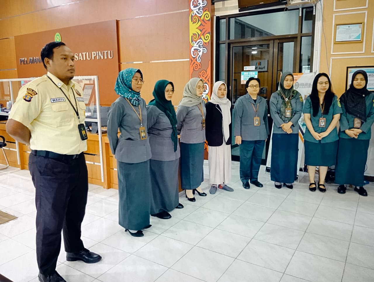 Samarinda, 21 Oktober 2025. Briefing PTSP oleh Panitera Muda Hukum dan Kepala Sub Bagian Kepegawaian, Organisasi dan Tata Laksana kepada Petugas PTSP dan Petugas Piket PTSP di Lobby Ruang Tunggu Kantor PTUN Samarinda.