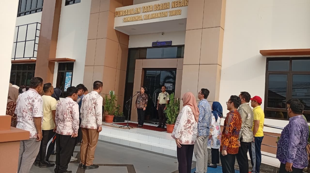 Samarinda, 10 Oktober 2025. Pelaksanaan Apel Sore dipimpin oleh Hakim PTUN Samarinda, Ratna Kartiani Sianipar, S.H. Dalam amanatnya beliau menyampaikan untuk selalu menegakkan integritas dan menjaga Kedisiplinan sebagaimana Perma 7, 8, 9 Tahun 2016, PP 94 Tahun 2021, Kode Etik Hakim, Panitera, Jurus Sita dan Kode Etik ASN. Selain itu beliau mengingatkan untuk tetap semangat dalam menjalankan tugas dan menjaga kesehatan.