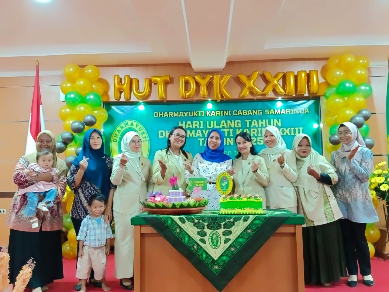 Ketua Dharmayukti Karini Cabang Samarinda menyampaikan sambutannya bahwa usia ke-23 menjadi momentum penting bagi Dharmayukti Karini untuk memperkuat peran organisasi dan menjaga kebersamaan dalam mendukung kegiatan sosial, pendidikan, maupun pembinaan internal.