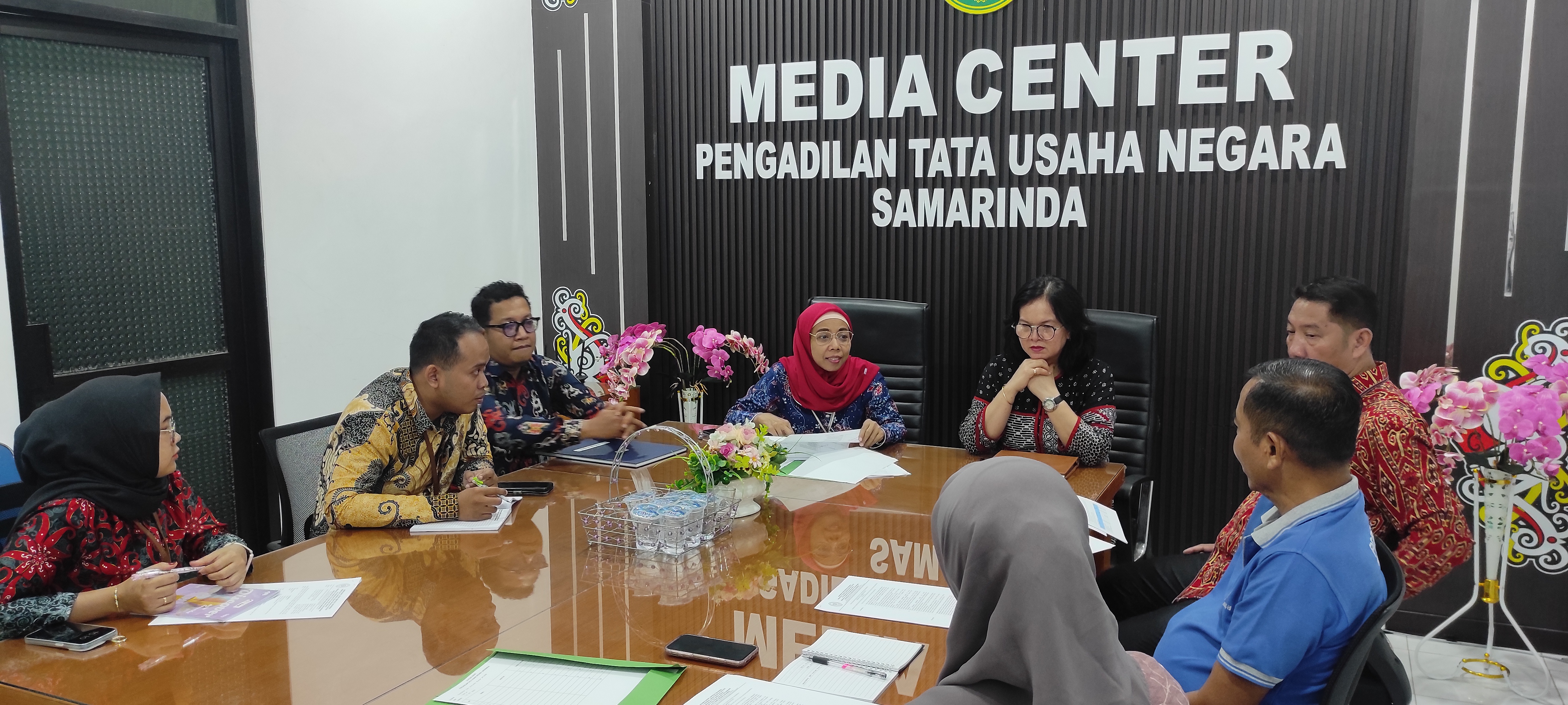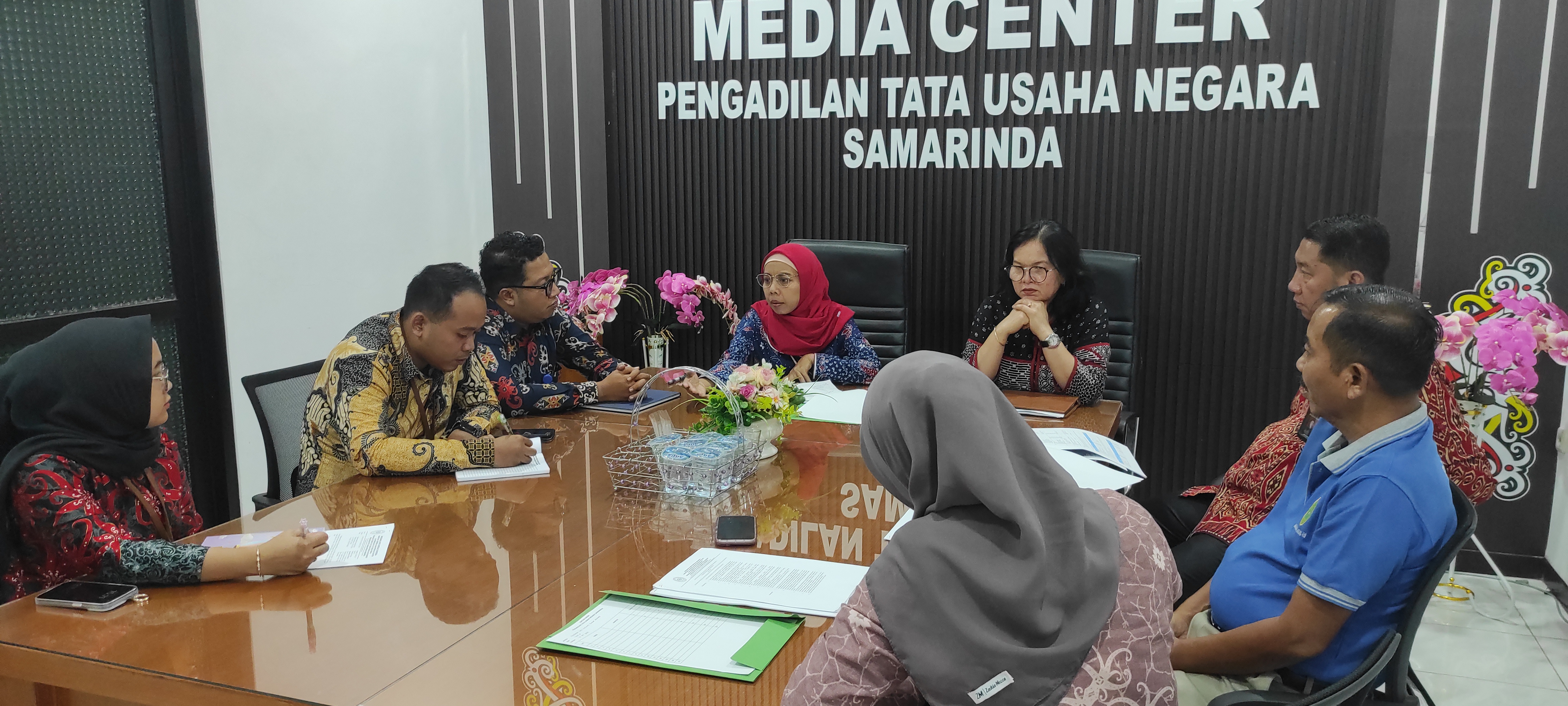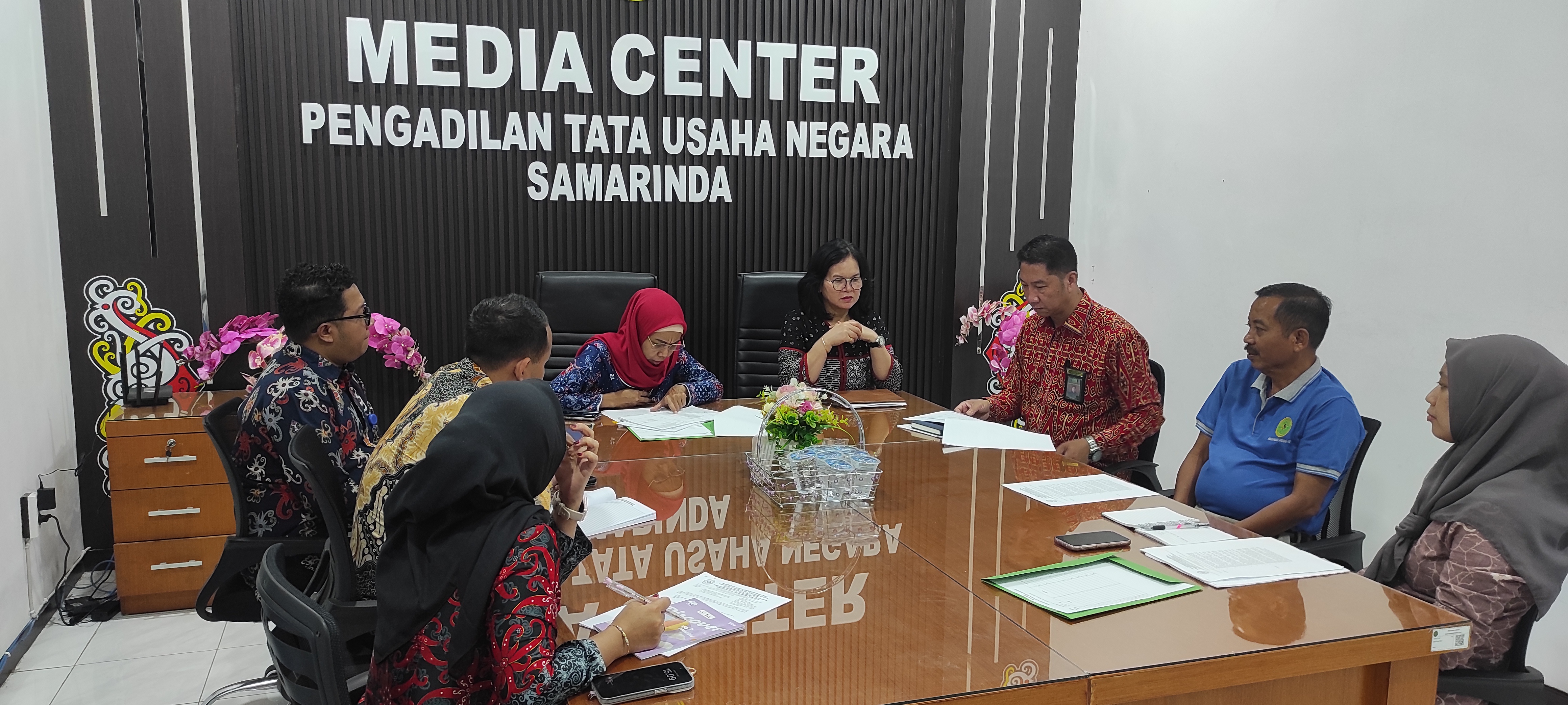 Samarinda, 16 Mei 2025, Ketua bersama Wakil Ketua Pengadilan Tata Usaha Negara Samarinda memimpin Rapat Monitoring dan Evaluasi Biaya Proses Perkara yang bertempat di Media Center. Rapat tersebut dihadiri oleh Panitera, Panitera Muda Perkara dan jajarannya Kepaniteraan Perkara.