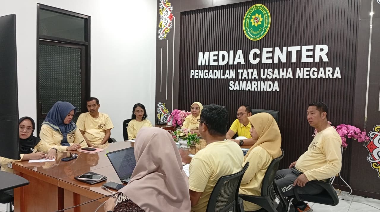 Samarinda, 10 Oktober 2025. Ketua bersama Wakil Ketua Pengadilan Tata Usaha Negara Samarinda memimpin Rapat Monitoring dan Evaluasi Indikator Kinerja Utama (IKU) Triwulan III Tahun 2025 di Ruang Media Center. Rapat Tersebut diikuti oleh Tim Penyusun Indikator Kinerja Utama (IKU) Pengadilan Tata Usaha Negara Samarinda.
