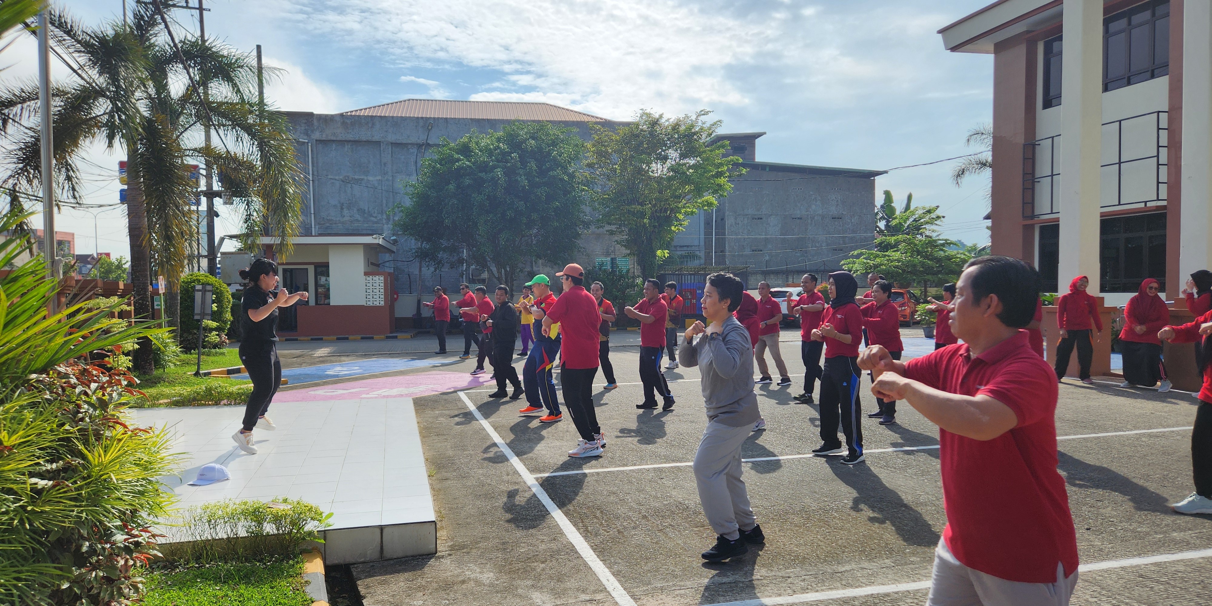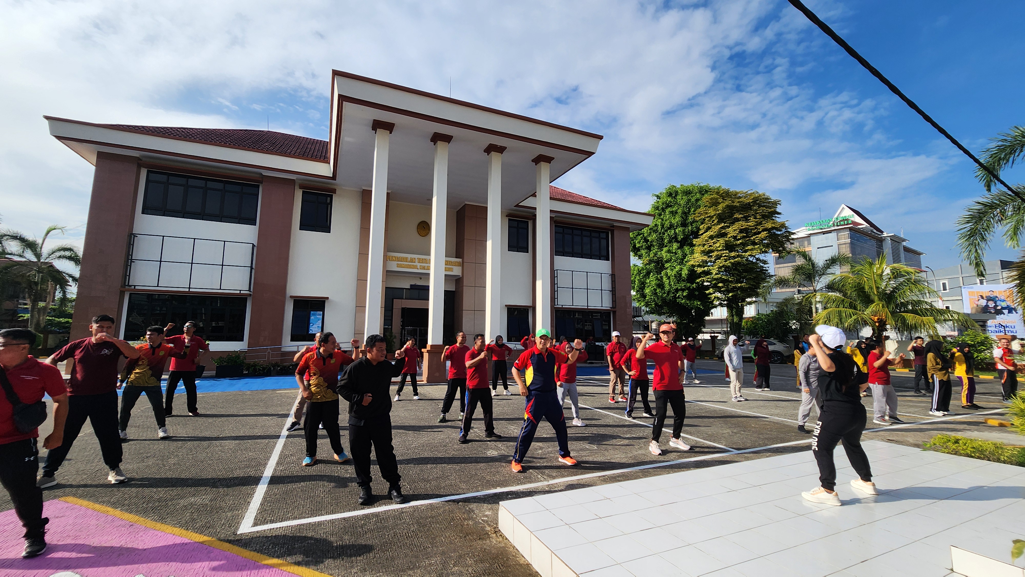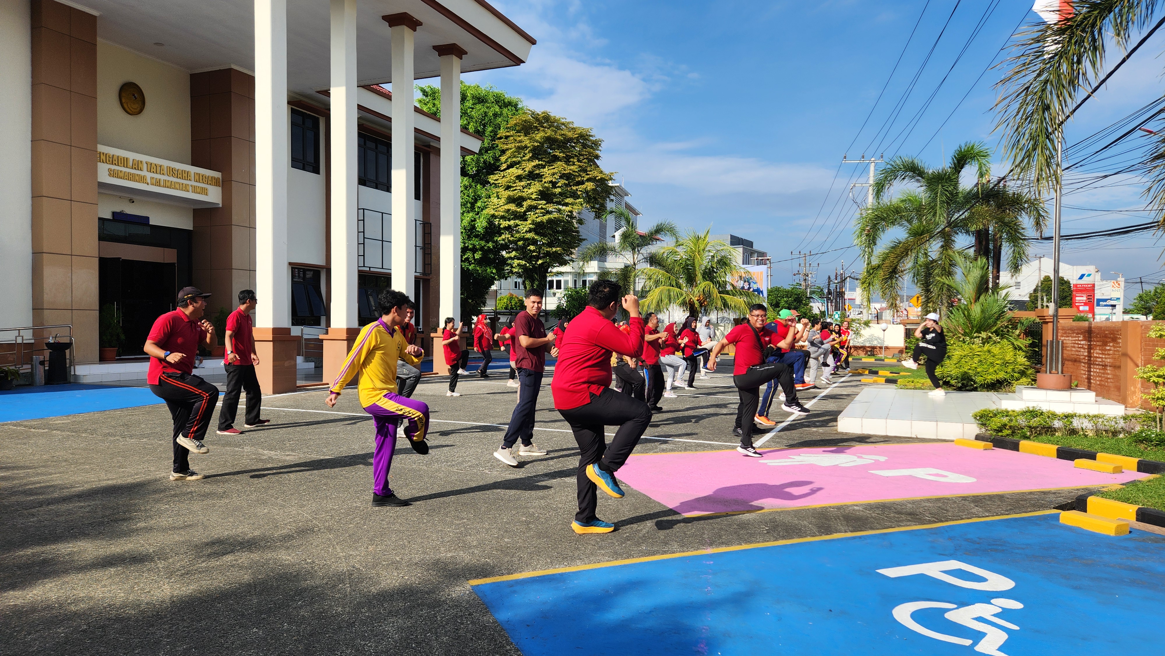 Samarinda, 19 September 2025. Senam sehat Keluarga Besar Pengadilan Tata Usaha Negara Samarinda. Ketua, Wakil Ketua, Hakim dan Seluruh Aparatur PTUN Samarinda bergerak mengikuti gerakan instruktur senam. Semoga dengan kegiatan senam ini, tubuh akan lebih sehat, bugar, dan enerjik. Sehingga pelayanan kepada masyarakat dapat lebih optimal.