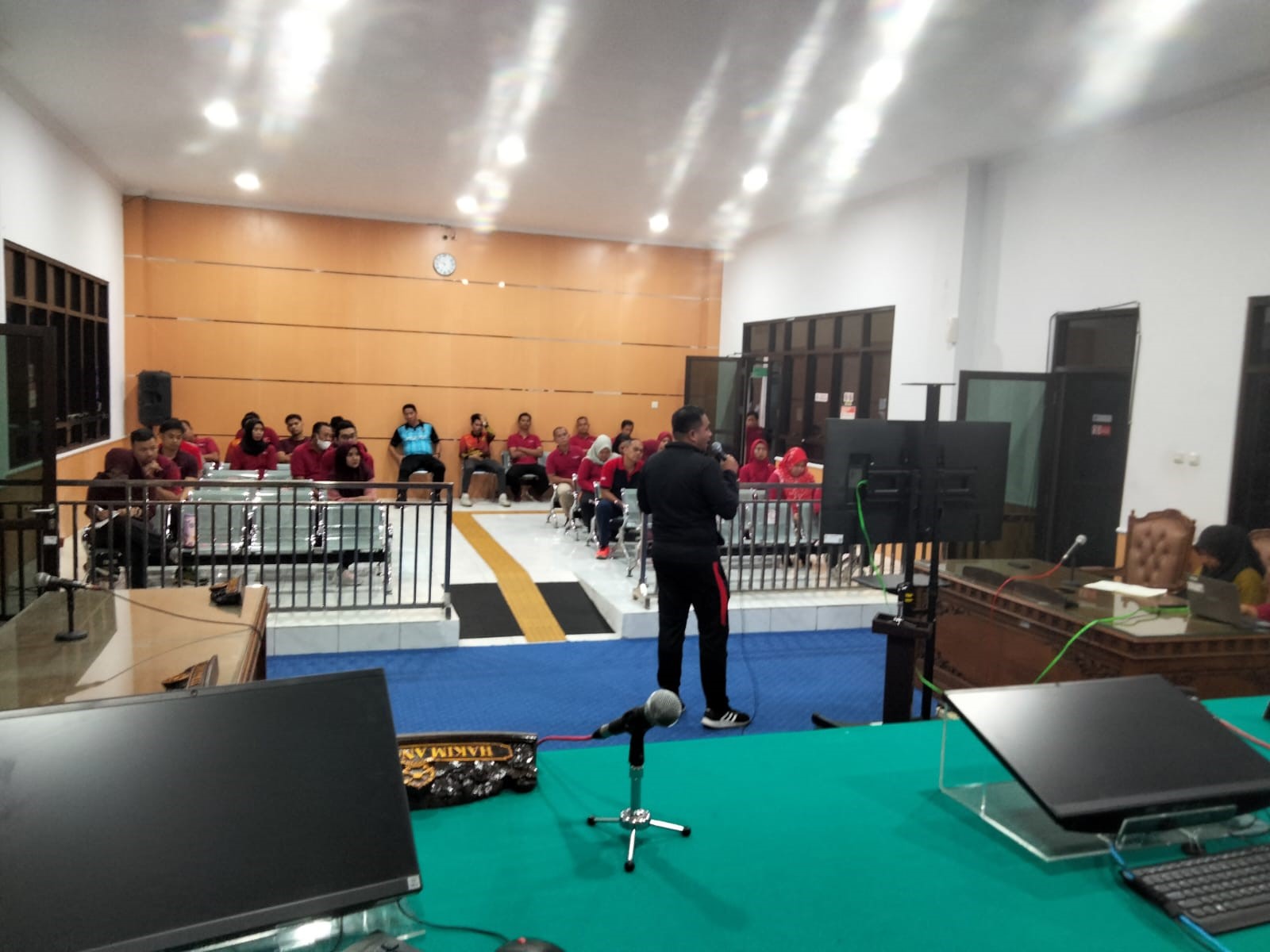 Samarinda, 19 September 2025. Sosialisasi Hasil Pelatihan Juru Bicara dan Pengelolaan Media Sosial Di Lingkungan Peradilan oleh Bapak Arafat, SH, MH, Hakim PTUN Samarinda, di Ruang Sidang Utama PTUN Samarinda. Sosialisasi tersebut diikuti oleh Ketua, Wakil Ketua, Para Hakim, dan Aparatur PTUN Samarinda.