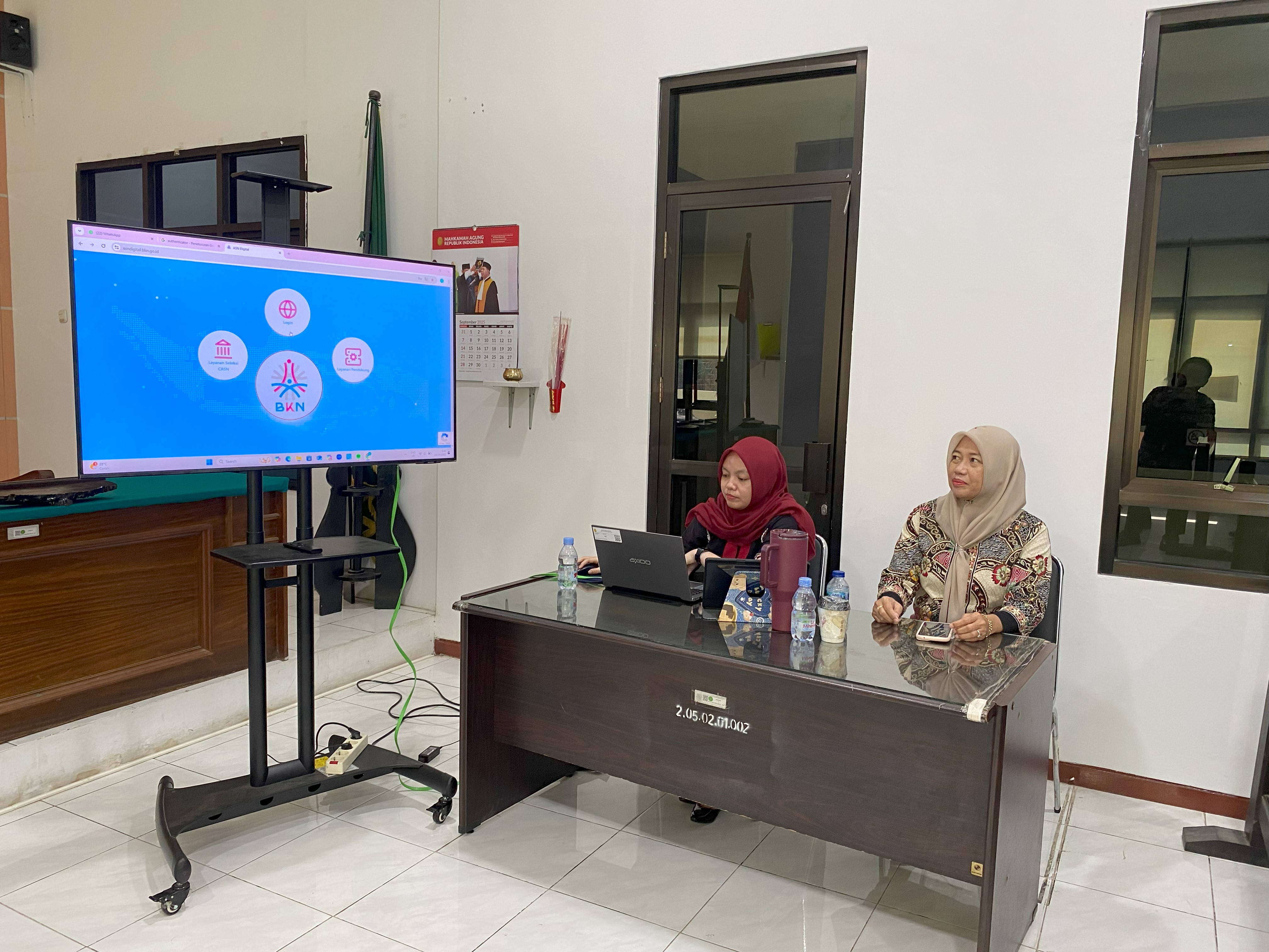 Samarinda, 26 September 2025. Sosialisasi Tata Cara Pengisian e-Kinerja Kepada PPPK oleh Sub Bagian Kepegawaian, Organisasi dan Tata Laksana PTUN Samarinda di Ruang Sidang 2 PTUN Samarinda. Pada sosialisasi ini, PPPK dipandu bagaimana tata cara pengisian e-Kinerja pada aplikasi My ASN dan pengajuan e-Kinerja kepada atasan.