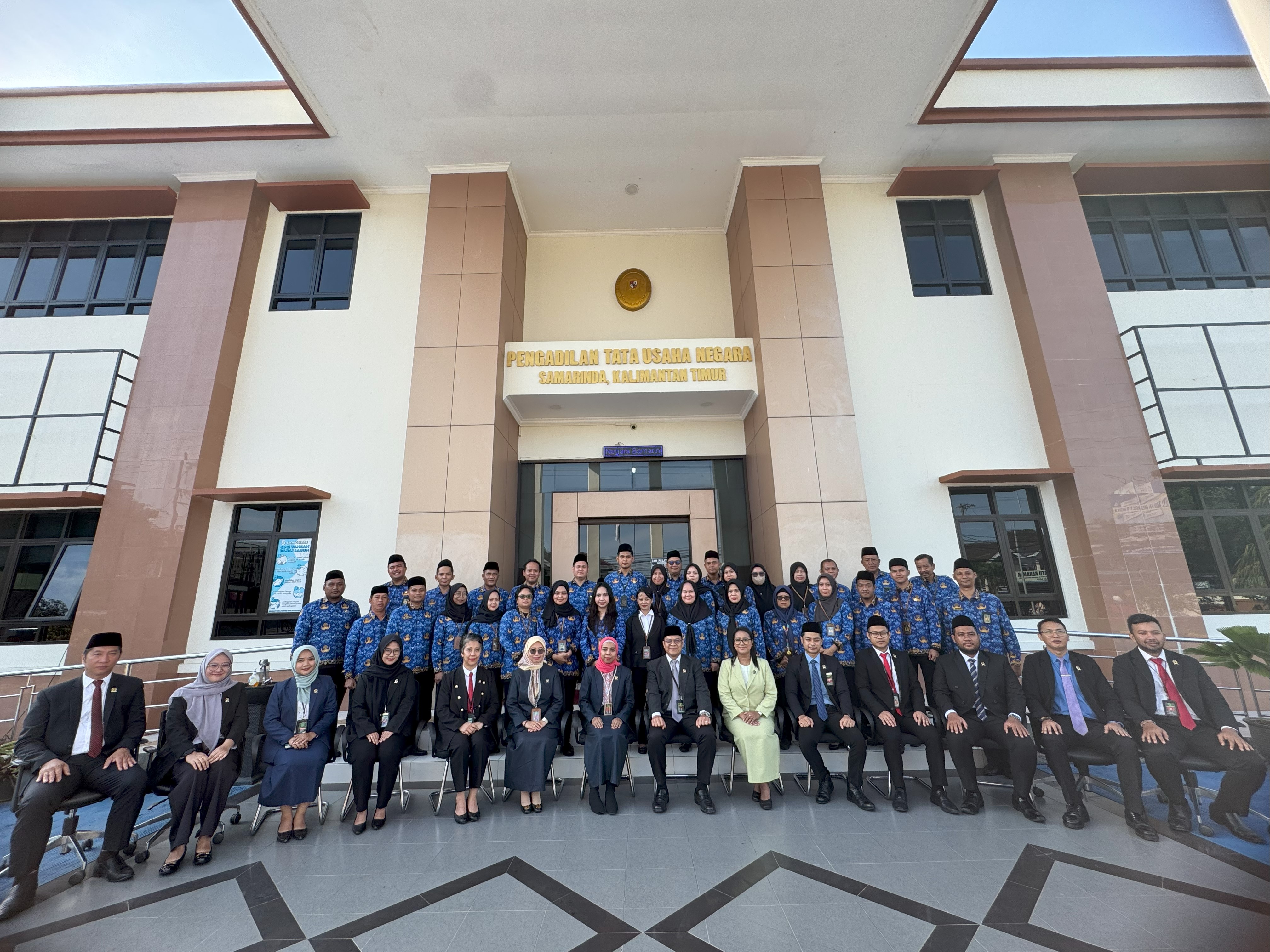 Ketua Pengadilan Tata Usaha Negara Samarinda, Ibu Dyah Widiastuti, S.H., M.H. bertindak selaku Pembina Upacara diikuti oleh Wakil Ketua, Bapak/Ibu Hakim, Panitera, Sekretaris, Pejabat Struktural, Pejabat Fungsional, Pelaksana, PPPK, dan Dharmayukti Karini PTUN Samarinda.